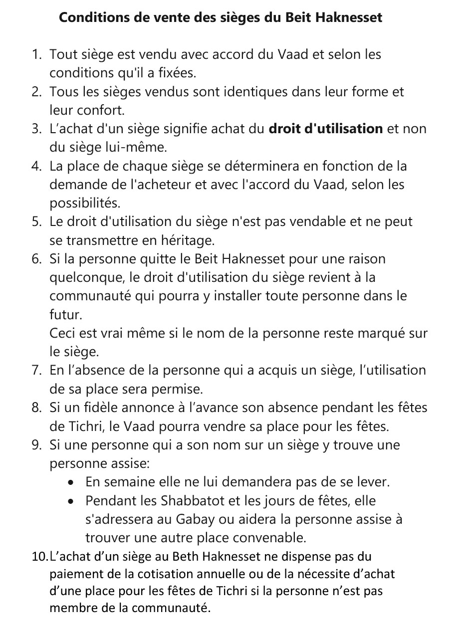 1- Je réserve un siège à mon nom dans la future synagogue ou je dédicace un espace.