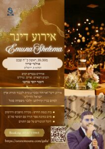 Le centre Emouna qui réunit autour de lui de grandes initiatives en faveur de ceux qui ont déjà fait leur alya et ceux qui sont en passe de la faire, vous convie à être présent et à participer à la réalisation de nos rêves, de vos rêves, pour achever les murs du lieu qui permettra de faire rayonner tout ce que Emouna veut dire.